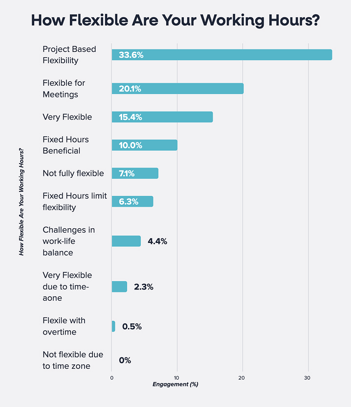 - 53% agree flexibility in schedule helps maintain work-life balance