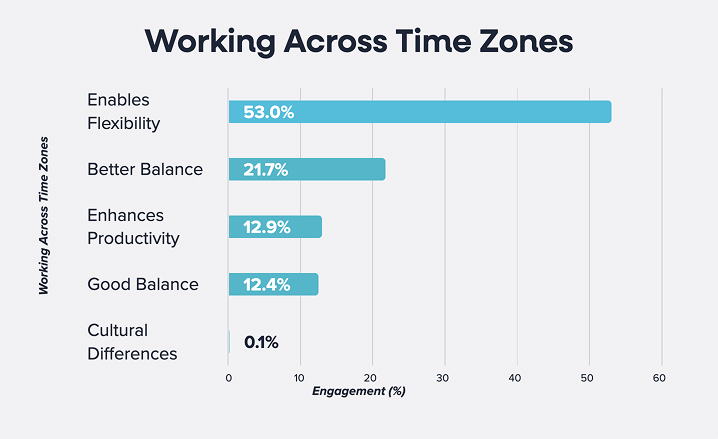 Our audience says the biggest perk of working across time zones is schedule flexibility (50.9%). With fewer rigid hours, many remote workers can structure their day to fit their lifestyle, making it easier to balance work and personal time.